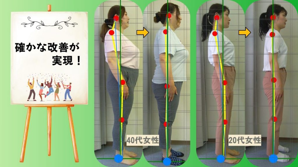 | ➡姿勢の改善指導により、肩こりや腰痛などの関連症状の改善が促進 |